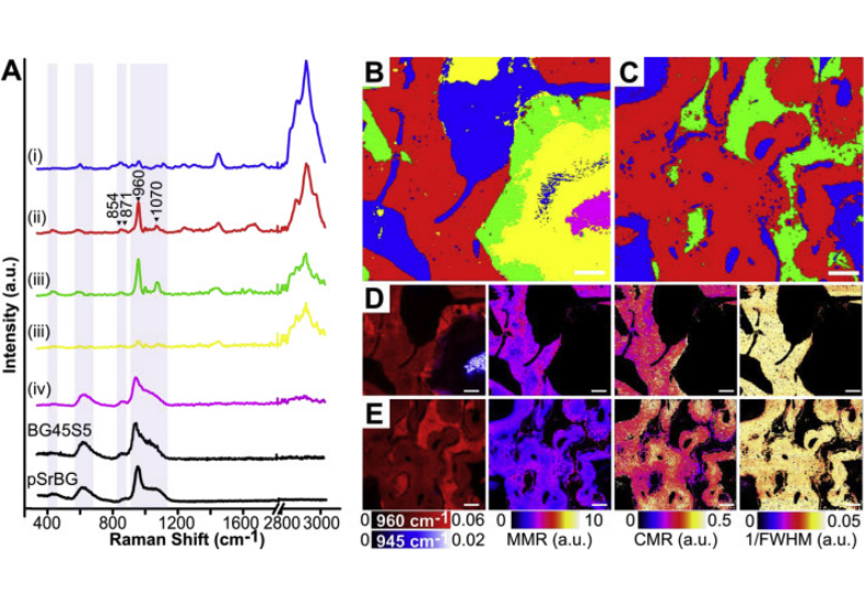 The efficient healing of critical-sized bone defects using synthetic biomaterial-based strategies is promising but remains challenging as it requires the development of biomaterials that combine a 3D porous architecture and a robust biological activity. Bioactive glasses (BGs) are attractive candidates as they stimulate a biological response that favors osteogenesis and vascularization, but amorphous 3D porous BGs are difficult to produce because conventional compositions crystallize during processing. Here, we rationally designed a porous, strontium-releasing, bioactive glass-based scaffold (pSrBG) whose composition was tailored to deliver strontium and whose properties were …