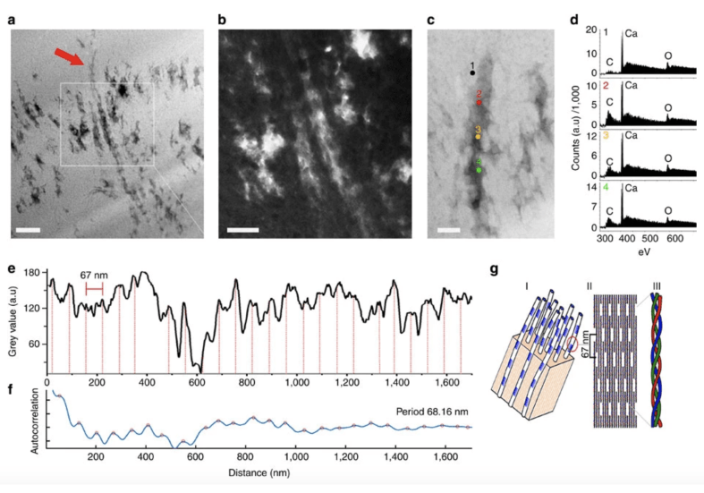 Exceptionally preserved organic remains are known throughout the vertebrate fossil record, and recently, evidence has emerged that such soft tissue might contain original components. We examined samples from eight Cretaceous dinosaur bones using nano-analytical techniques; the bones are not exceptionally preserved and show no external indication of soft tissue. In one sample, we observe structures consistent with endogenous collagen fibre remains displaying∼ 67 nm banding, indicating the possible preservation of the original quaternary structure. Using ToF-SIMS, we identify amino-acid fragments typical of collagen fibrils. Furthermore, we observe structures consistent with putative erythrocyte remains that exhibit mass spectra similar to emu whole blood. Using advanced material characterization approaches, we find that these putative biological structures can be well …